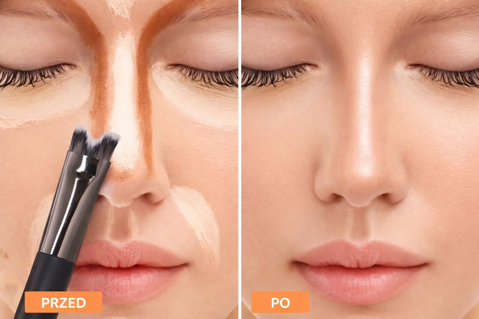 Na nosie pędzel służy do konturowania i rozświetlania, czyli do nadania mu smuklejszego kształtu.